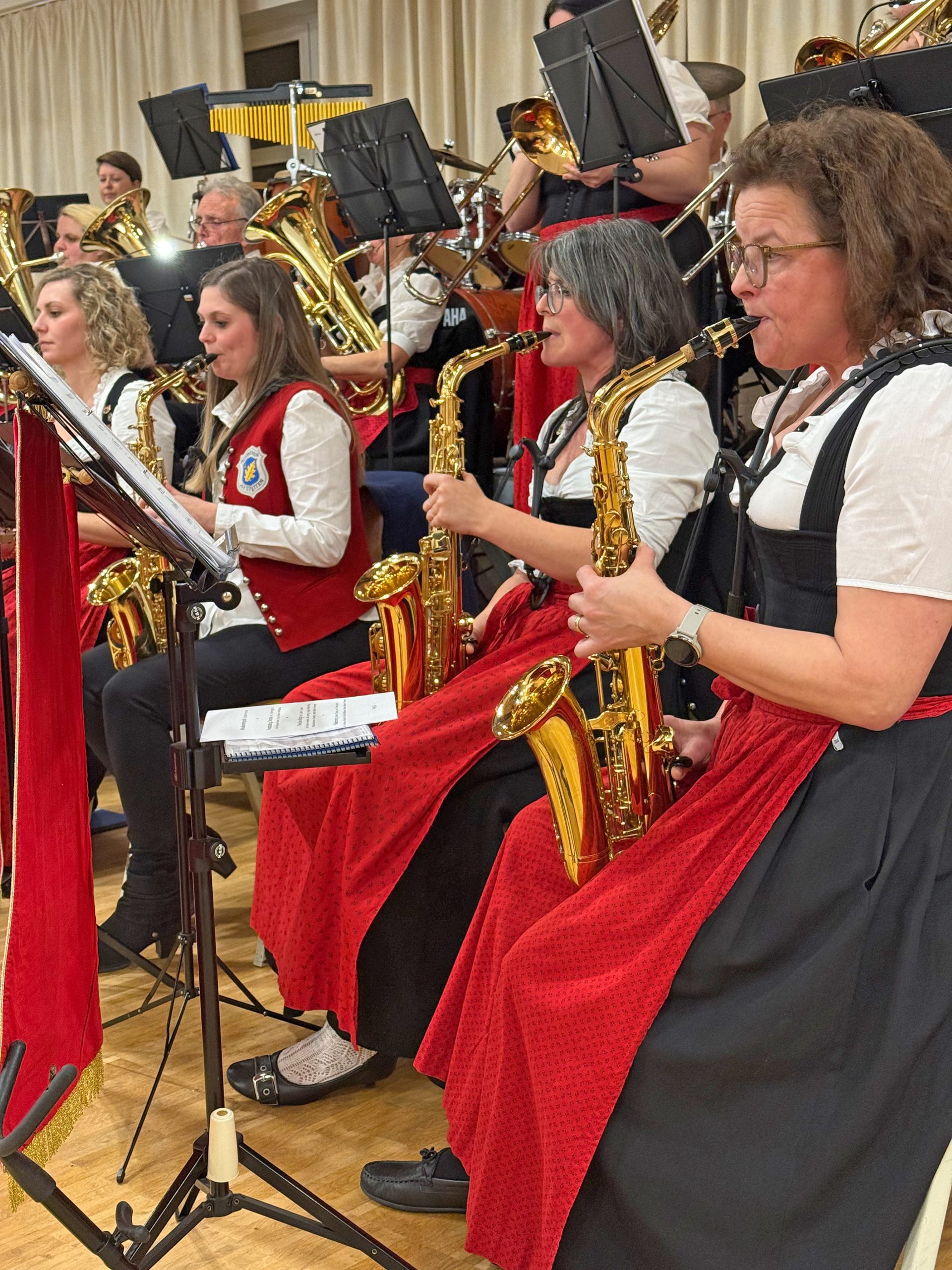Darüber hinaus präsentierte die Kapelle den Oldie „Reach Out I’ll Be There“, die konzertante Komposition „Where Eagles Soar“ von Steven Reineke und das Medley „Pops in the Spots“. Fans der traditionellen Blasmusik kamen beim Eröffnungsmarsch „Musikantengruß“ von Siegfried Rundel und bei der Zugabe „Augsburger Land“ von Franz Xaver Holzhauser auf ihre Kosten.